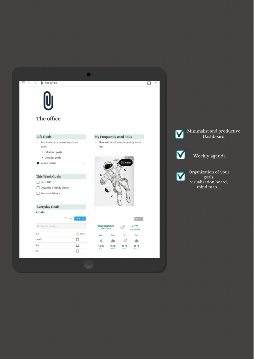🌟This dashboard is a simple way to organize your time and your main task of the day.